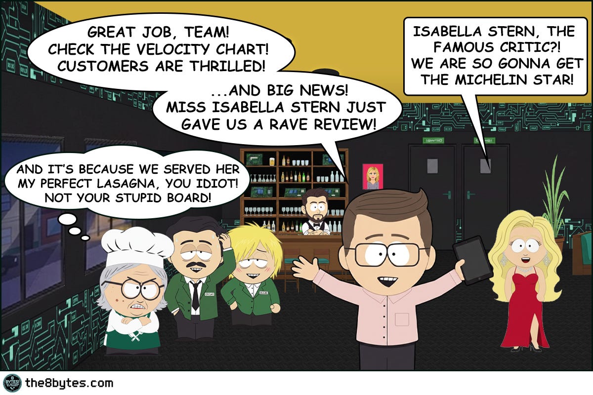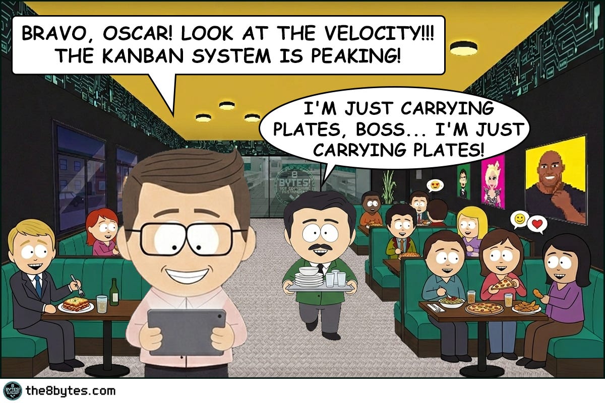 Cody, the bartender: “Bill was proud. And he had every reason to be. The first sprint was clean. The Kanban board performed. And Isabella Stern, the most feared restaurant critic in the city, had not only stayed for dessert, but wrote about it in the newspaper.